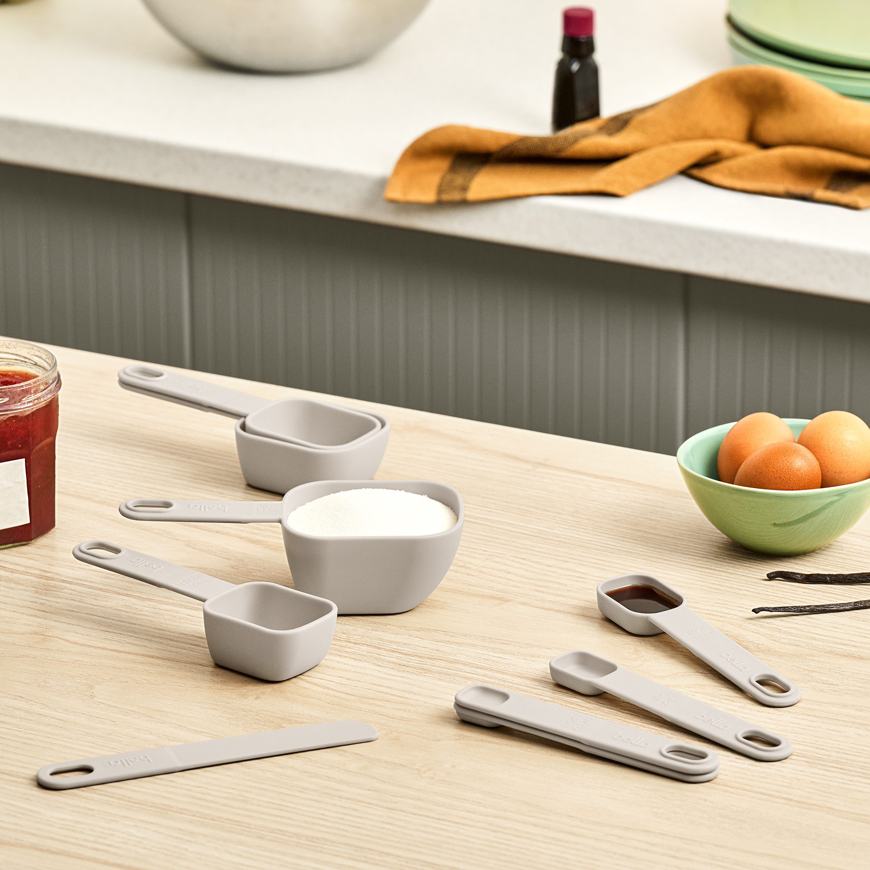 Designed for everyday cooking and baking, this thoughtfully crafted set includes measuring cups, spoons, and a leveler that snap together for compact, clutter-free storage. Non-slip handles provide a secure, comfortable grip, while the included leveler helps ensure precise results every time. Because even a little extra flour can change the outcome. Made from durable BPA- and BPS-free nylon with TPR overmold, these measuring tools are dishwasher safe for quick and easy cleanup. Compact, reliable, and easy to store, this nesting set delivers performance without taking up space. Because every great recipe starts with the right measure.